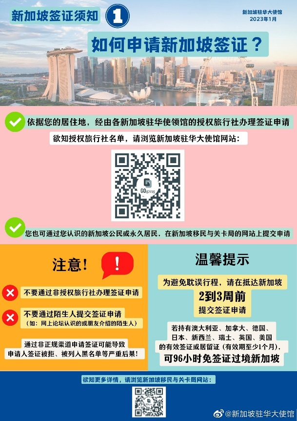 打算到新加坡去旅游、探亲吗?关注新加坡驻华大使馆的官方微博,新加坡签证须知系列让您安心出游不踩坑!