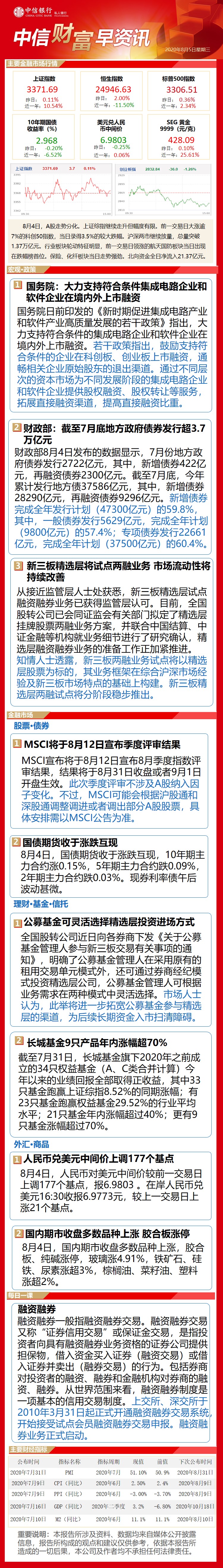 中信财富早资讯8月5日