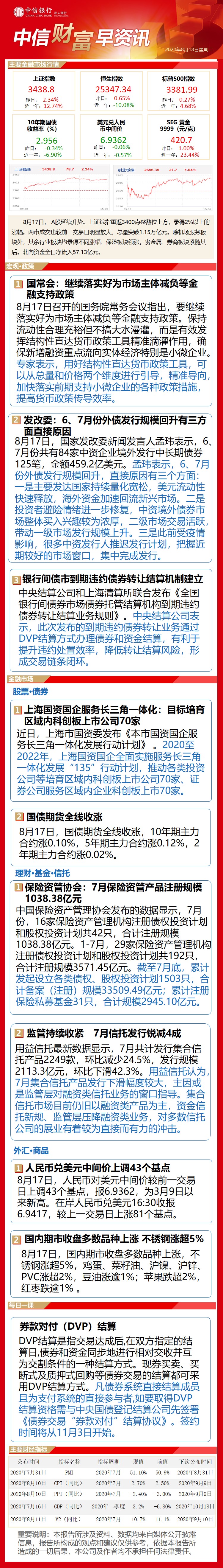 中信财富早资讯8月18日