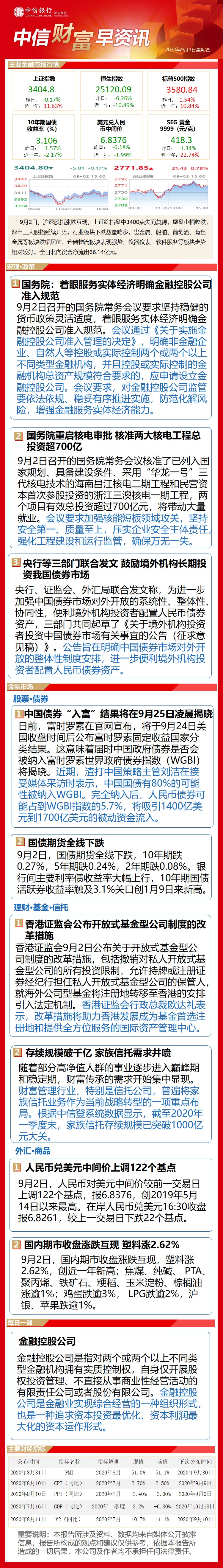 中信财富早资讯9月3日