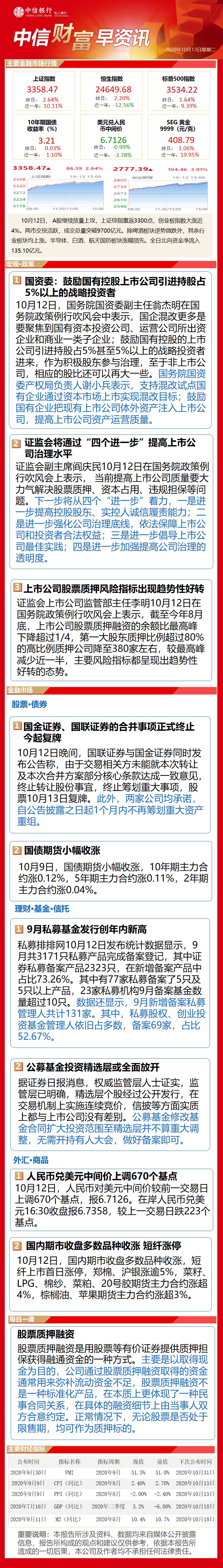 中信财富早资讯10月13日