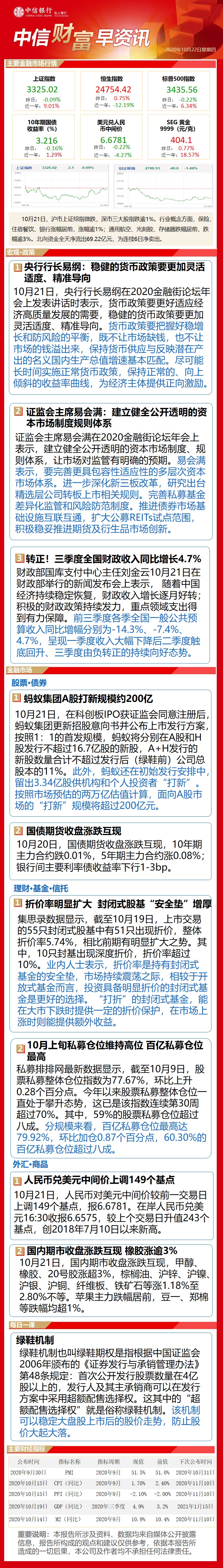 中信财富早资讯10月22日