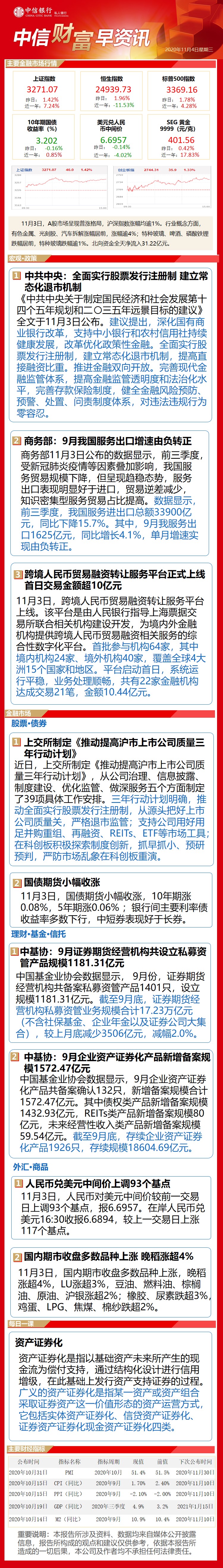 中信财富早资讯11月4日