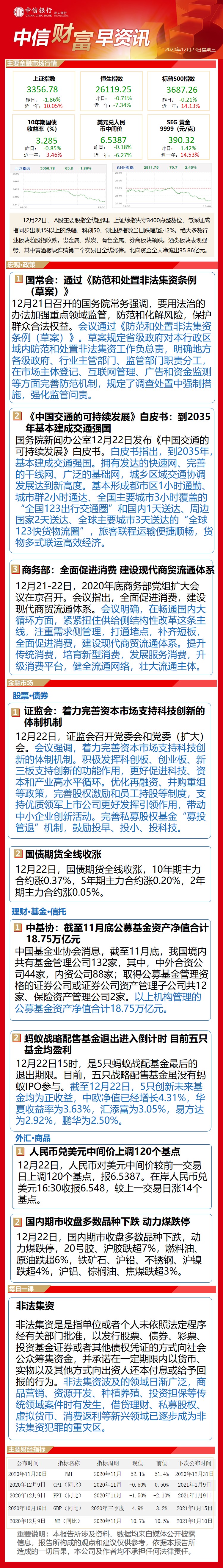 中信财富早资讯12月23日